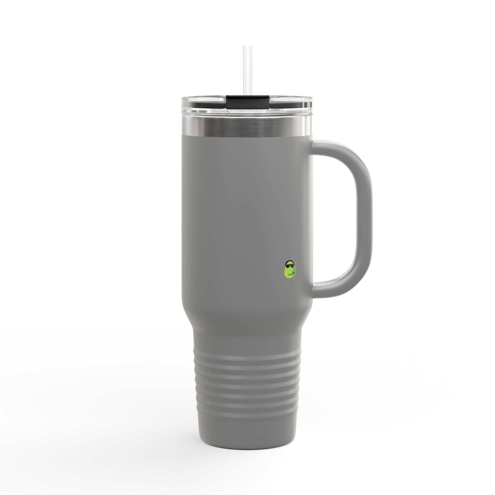 This 40oz insulated travel mug blends rugged reliability with everyday comfort. Double-wall stainless steel keeps coffee hot or iced drinks cold for hours, while the ergonomic handle and included straw make long drives, early shifts, and outdoor days easier. The secure, leak-resistant lid features a tight seal and an easy latch so you can toss the tumbler in a bag without worry. Powder-coated for a soft, grippy finish and available in eight colors, it carries a crisp UV-DTF print that resists fading. Lightweight for its capacity, BPA-free, and built to travel, this mug fits into busy routines — from sunrise road trips to late-night study sessions.